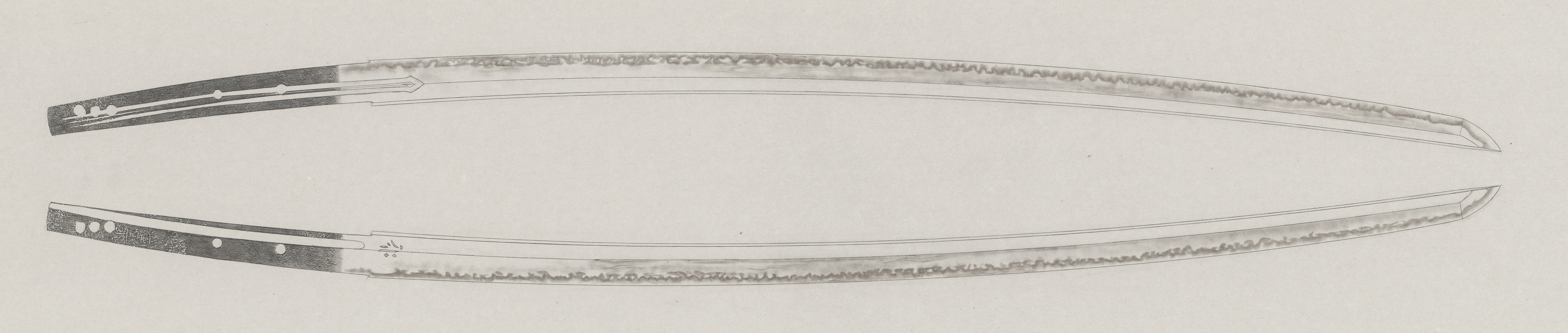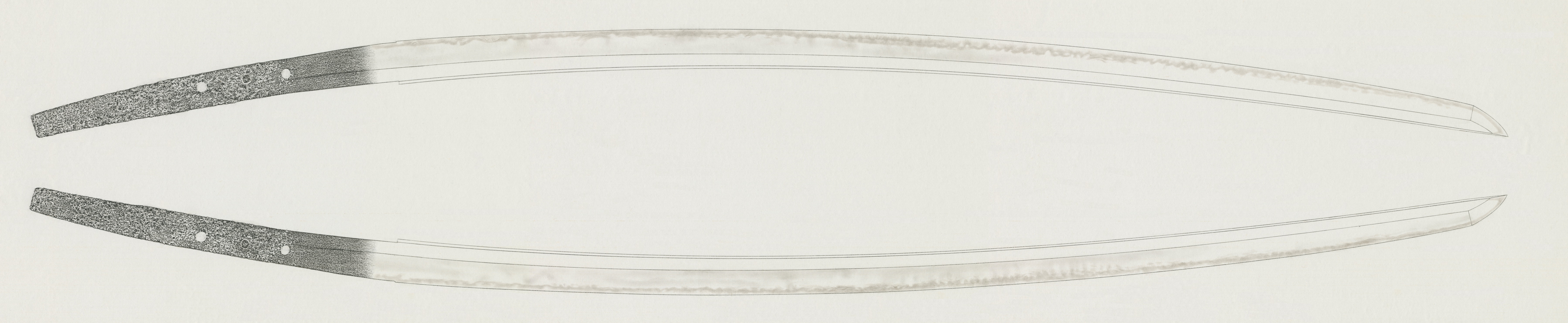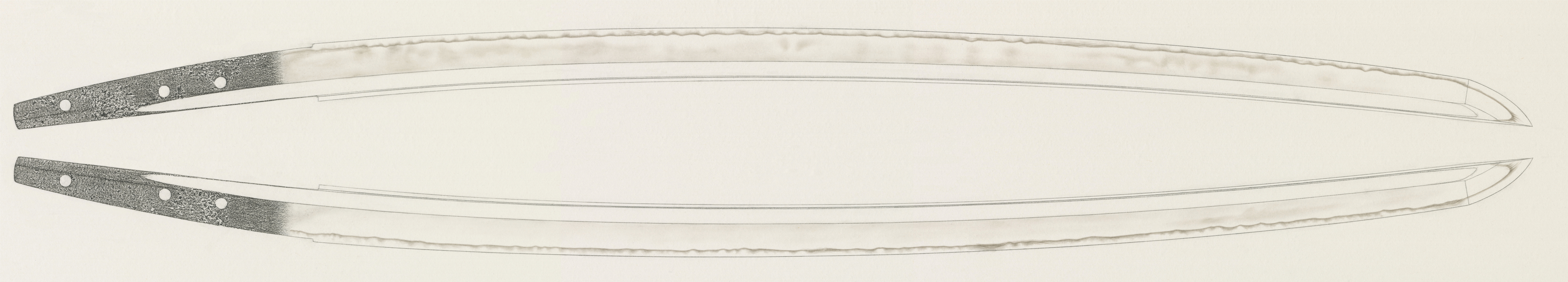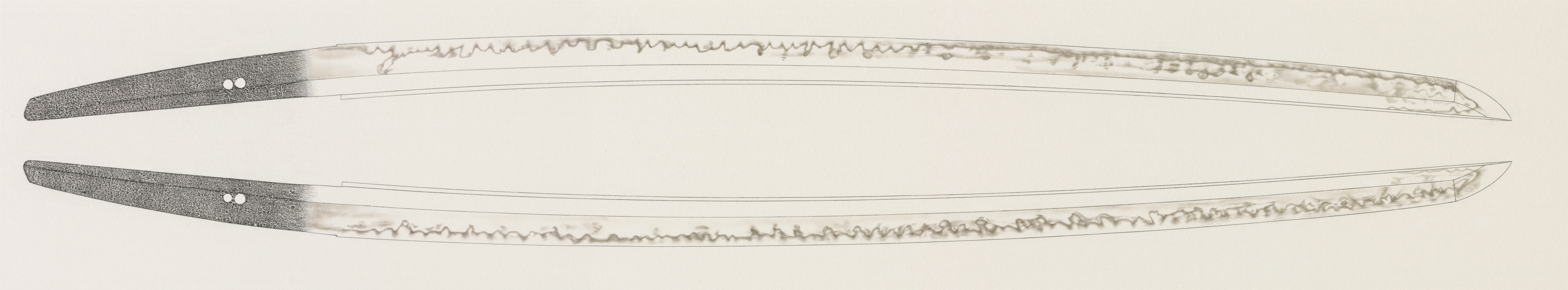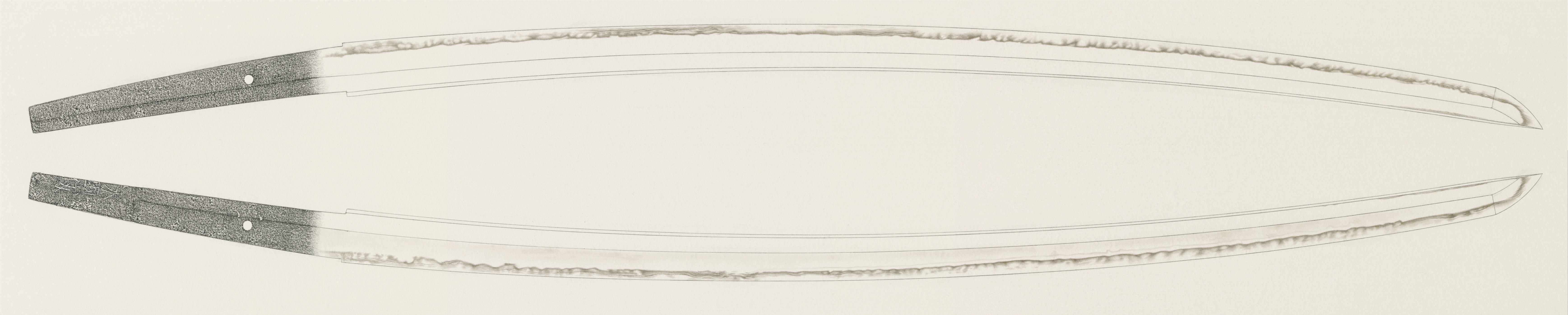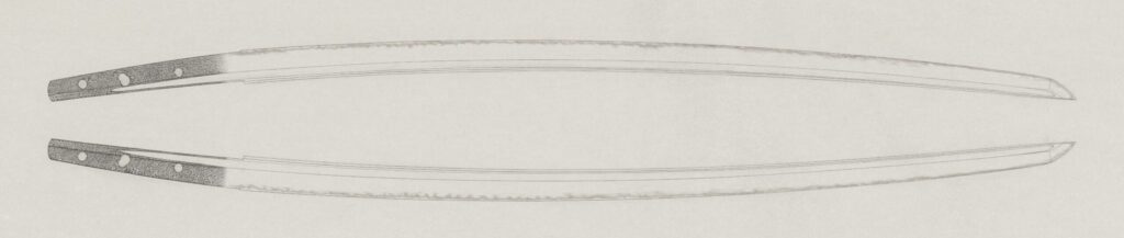 鎬造、三つ棟。重ね厚く、反り浅めに身幅広く、中鋒詰まり、茎短い。