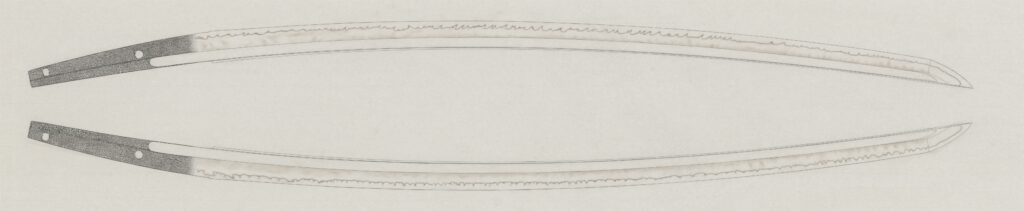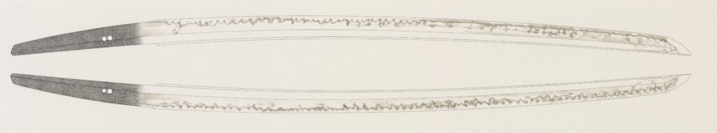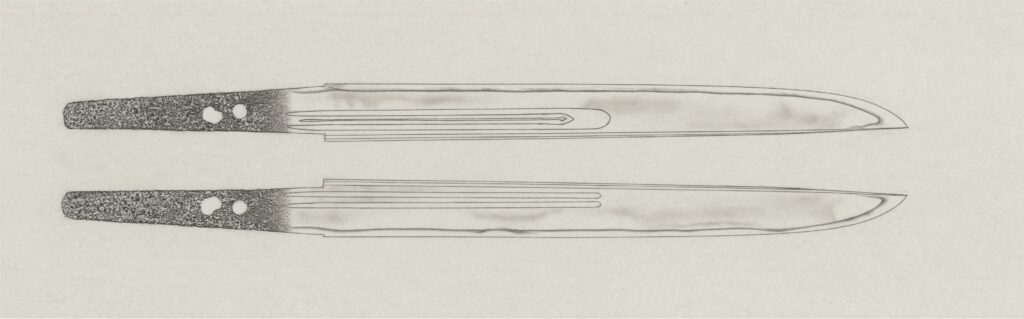 彫物、棒樋に連れ樋を茎尻まで掻き通す。