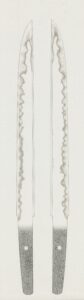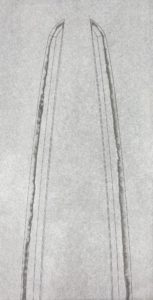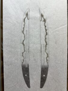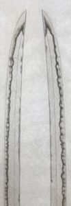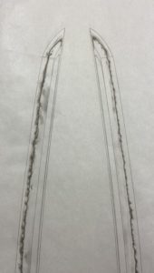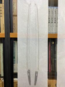片チリに比べると両チリの刀は圧倒的に少ないです。部分押形程度ならよいのですが、全身となると実は両チリの刀は非常に難しいものです。鎬の線がざっくりと出る様な採り方ならば簡単なのですが、明瞭で強い線をだそうとするとかなりの手 […]