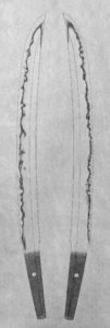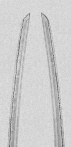 一号 刀 少し反りが強め。大互の目で匂い口深い。尖り刃が少し。三品帽子ではない。 肌がよく出る。 互の目の形や匂い口の雰囲気から山城新刀だと思うが堀川系ではない。 三品帽子でなないが、尖り刃が2,3個あるので三品系じゃな […]