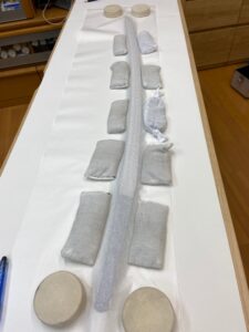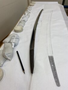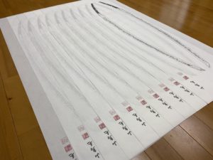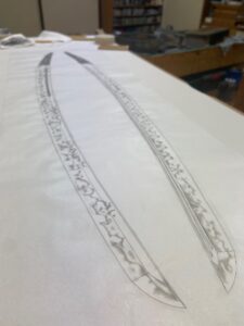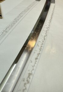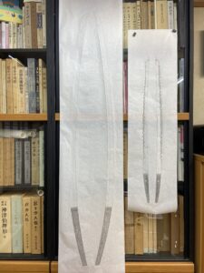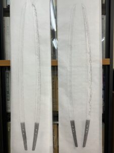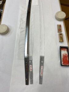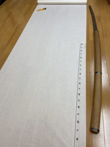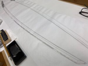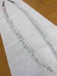 数年前、某御宮様御所蔵の大太刀の全身押形の制作を予定していましたが、私が肩を骨折してしまい制作出来ずにおりました。肩の調子もすっかり良くなりましたので、押形を。(HPへの掲載のお許しを頂いております) 押形用紙を裁断。当 […]