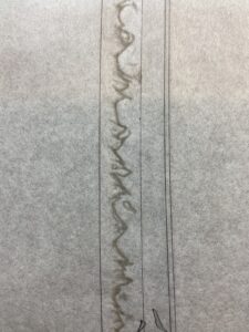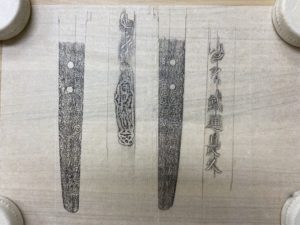 押形を行っている時は写経の様な気持ちで・・・と話す事がありますが、この太刀の梵字を写している時は正に写経を感じました。三浦研師と何度か行ったことがありますが、お寺で写経をさせて頂くのは本当に気持ちの良いものですね。