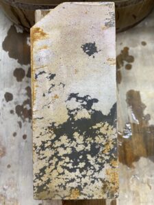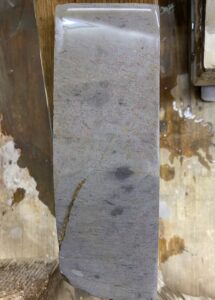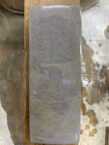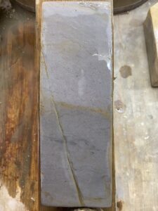 No.112厚さ5cm。表裏とも面が付いています。側面を見ると表裏で多少質が違う様です。 表面砥石硬度 6/10研磨力 4/10刀身は末相州。刀身硬度6/10 掛かりが今一なので裏を。。 裏面砥石硬度 6/10研磨力 […]