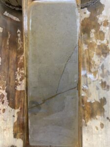No.105この手のカラスの砥石は、あると妙に嬉しくなる石です。少し狭い幅ですが研ぎやすく、普段使いの小刀を研ぐのに使用しています。どの山産でしょう…。おそらく梅ケ畑周辺の山でしょうか。こういう砥石に刀を当てた研汁を見る […]