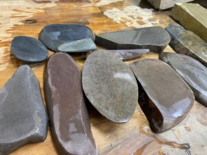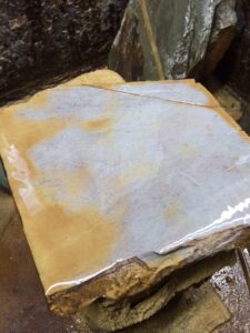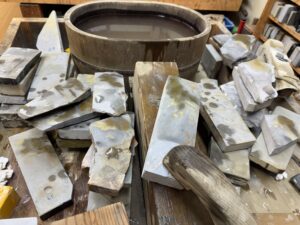 今回は原石や大判を。倉庫にある砥石に手を出すとちょっと大変なので、玄関先と研ぎ場内に置いてある石で。 No.89原石の上に置いた砥石が通常の大きさです。端の面を出してみました。どこ産なのでしょうか、産地不明です。粒度は荒 […]