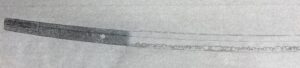 生ぶ茎在銘の古備前太刀。古備前刀工中の稀少銘。全体に研ぎ疲れはありますが、当初の雰囲気を残す小乱れ刃の範囲も広い。しかし以前研磨した研師があまりに酷く・・・。とりあえず、内曇り、地艶、拭い、刃取り等一連の仕上げを経ている […]