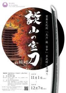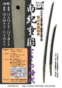 和歌山県の九度山・真田ミュージアムにて下記の二つの展覧会が開催されます。 全日本刀匠会近畿地方支部展 「悠久の美・日本刀展ー近畿で活躍する刀匠たちー」 日本美術刀剣保存協会和歌山県支部展 「美術日本刀展 ー紀州刀工を中心 […]