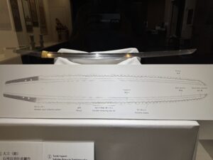 また気になり、今朝改めて調べると簡単に見つかりました。以前もデジコレ見てたはずなんですが・・・。 MUSEUM136に寒山先生による詳細が。『長さ88㎝、反り2.9㎝、元幅3.28㎝、先幅2.28㎝、鋒長5.75㎝茎長2 […]