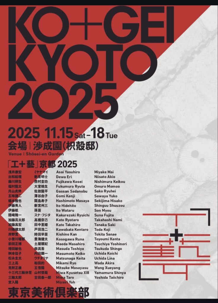 11月15~18日まで、渉成園にて「工+藝」京都2025が開催されます。