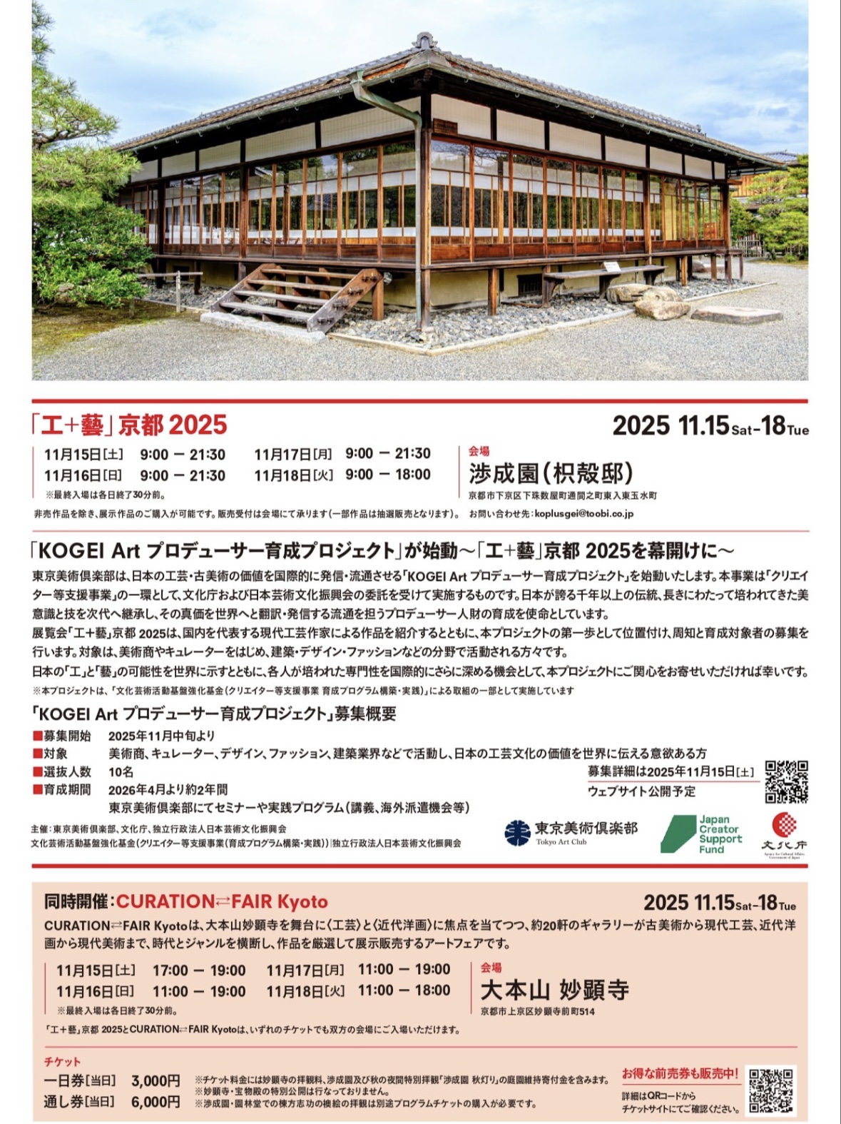 11月15~18日まで、渉成園にて「工+藝」京都2025が開催されます。