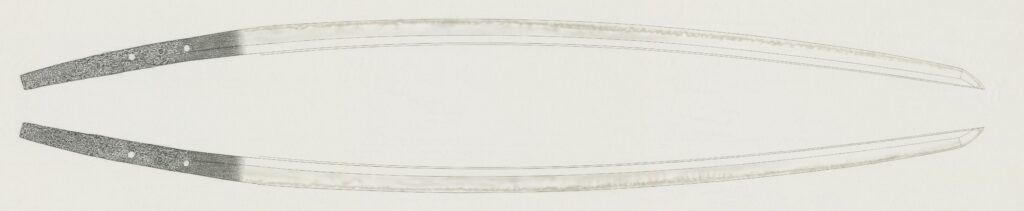 地肌を出そうという意識を持たず湿潤に抑え、地鉄との硬度差が皆無の柔らかい刃を、普段は使わない大平の刃艶で強めにぼかして仕上げています。