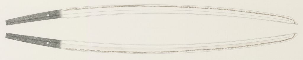 6 刀 無銘 来国行(京都国立博物館蔵/平成30年度、京都国立博物館館蔵品修復事業に於いて、記録として全身押形採拓)