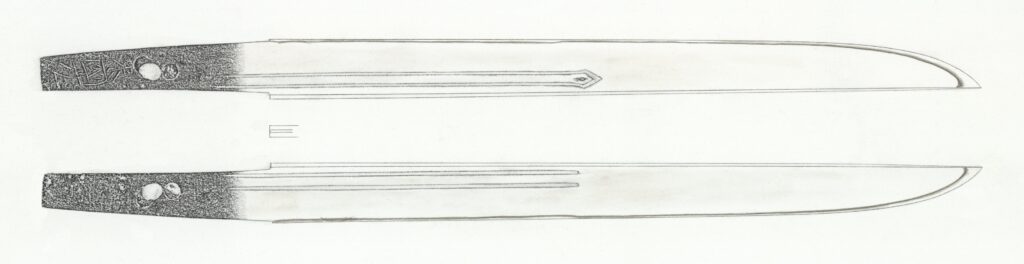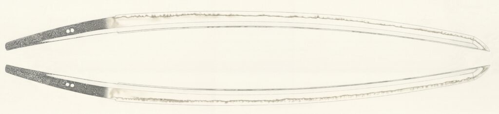 (3)の太刀は少し区を送っていますが、表裏の全身押形で見ると、綺麗なレンズ型の配置となる京反り姿です。